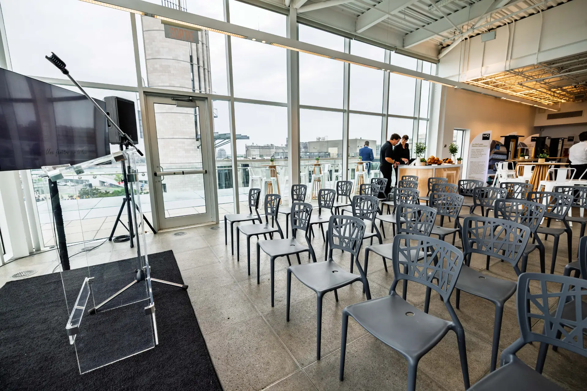 Le 9 juin 2025, nous avons organisé un événement corporatif prestigieux pour la compagnie Fenêtres MQ, à l’Espace Cogeco du musée Pointe-à-Callière à Montréal. Cet espace lumineux et vitré, avec une vue imprenable sur le Vieux-Port de Montréal, a accueilli employés, partenaires et invités dans une atmosphère professionnelle et chaleureuse.