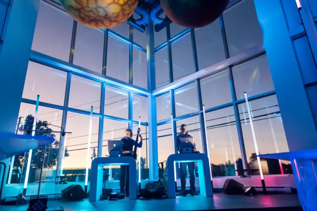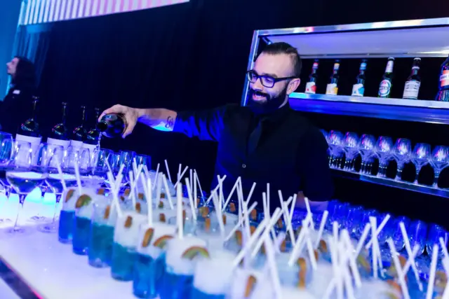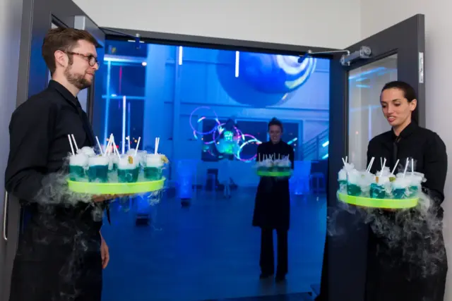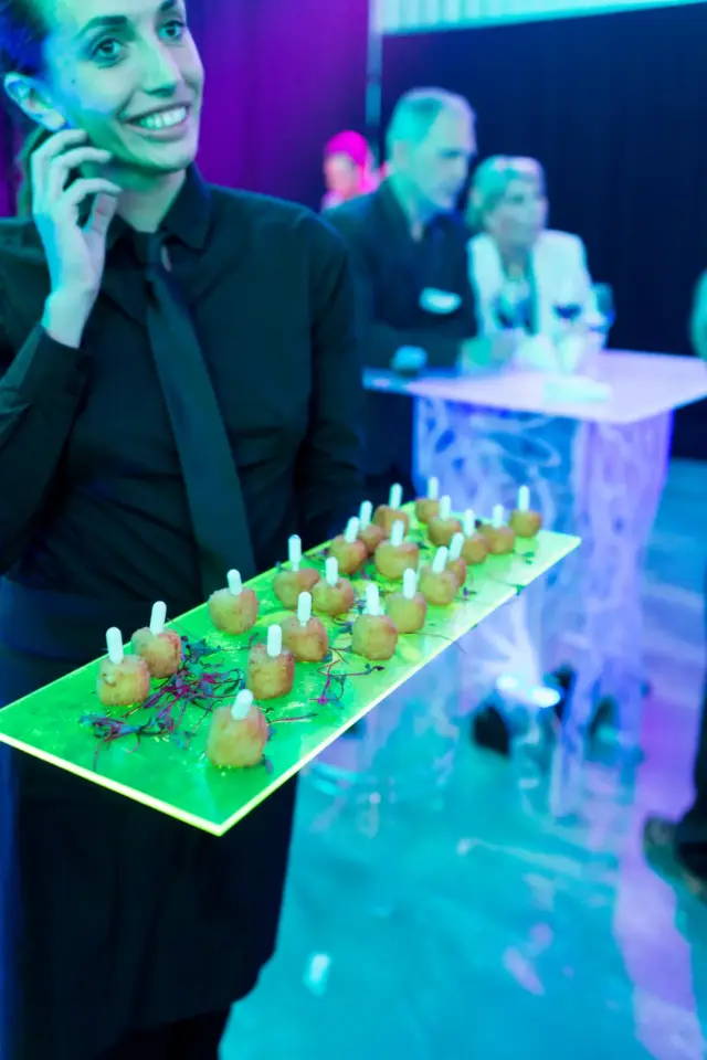 À l’accueil, les invités ont exploré une ligne du temps à travers les écrans. Lors de ce cocktail dînatoire, notre mixologue a élaboré un cocktail signature, accompagné de bouchées raffinées.