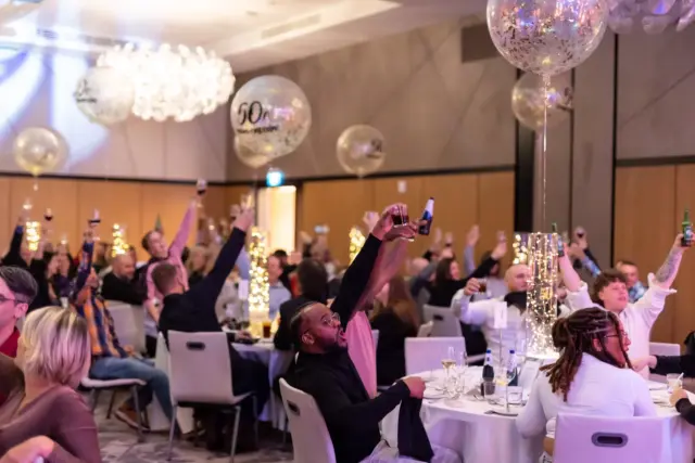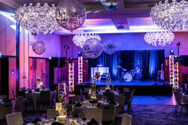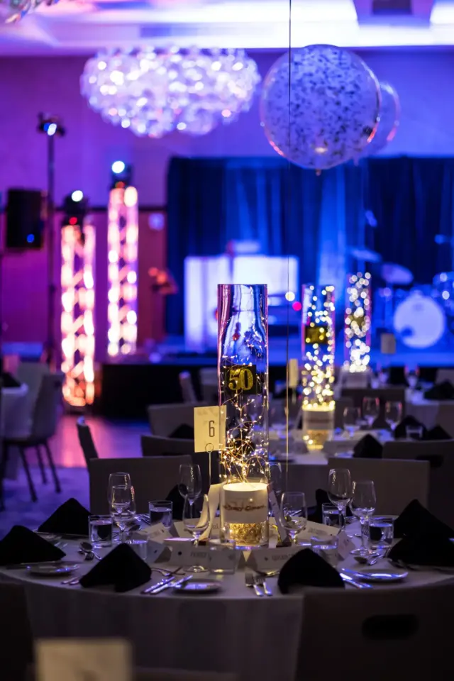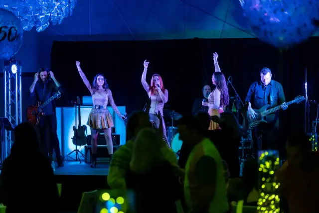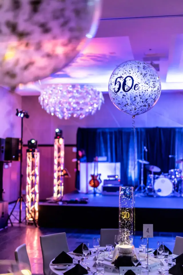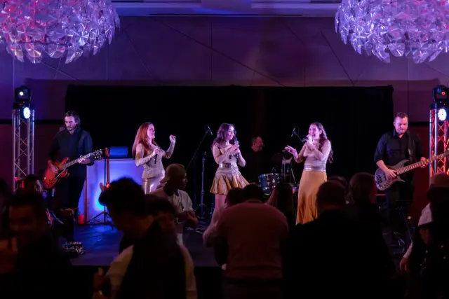 Le lieu, décoré avec élégance dans des tons festifs d’or et de blanc, offrait aux invités une atmosphère conviviale. Des ballons imposants, des centres de table éclairés et une scène accueillant le groupe Bond Girls ont transformé l’environnement. L’excellent repas servi par l’équipe de l’hôtel Humanity a également contribué à rehausser cet événement.